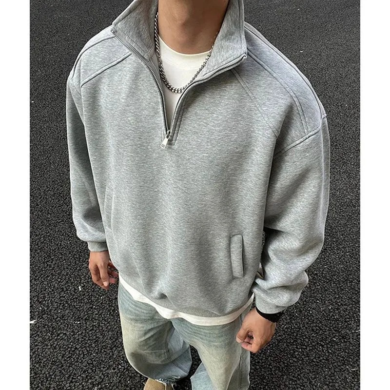 Heavyweight Cotton Stand-Collar Half-Zip Sweatshirt – Retro American Style Zip-Up Jacket