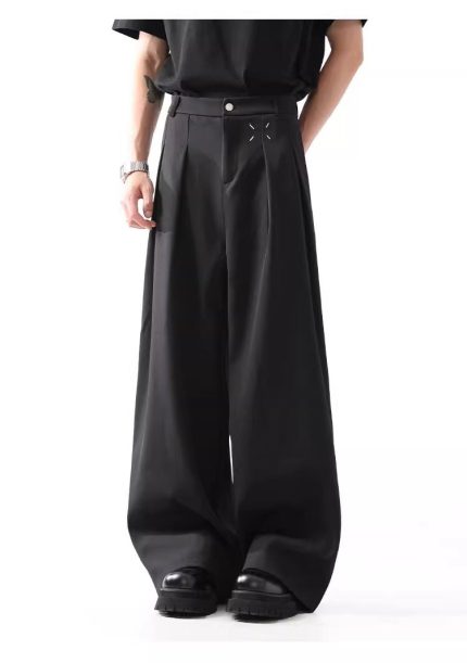 Summer Clean Fit Black Wide-Leg Trousers – Curved Blade Cut with Fluid Drape